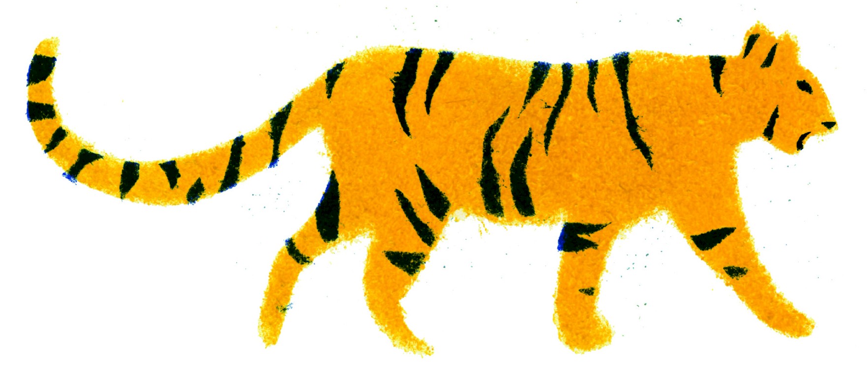Foto 'Tijger', sjabloondruk, blockprint op papier, 20x14